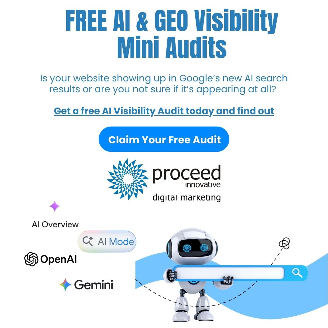 This month, Proceed Innovative is offering 5 FREE “AI & GEO Visibility” Mini Audits to help Schaumburg-area businesses understand how they rank in AI-powered search.