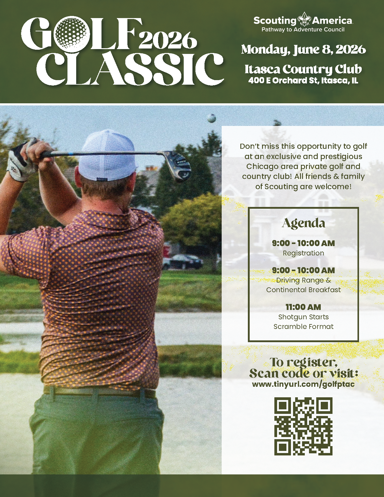 The strength of our community is rooted in how we invest in the next generation. Through Scouting, more than 13,000 young people each year develop leadership, resilience, and teamwork through meaningful, hands-on outdoor experiences. We invite you to join us on Monday, June 8, at Itasca Country Club for this yearβs Golf Classic. An exceptional opportunity to enjoy a day of golf while supporting an organization dedicated to shaping our future leaders.